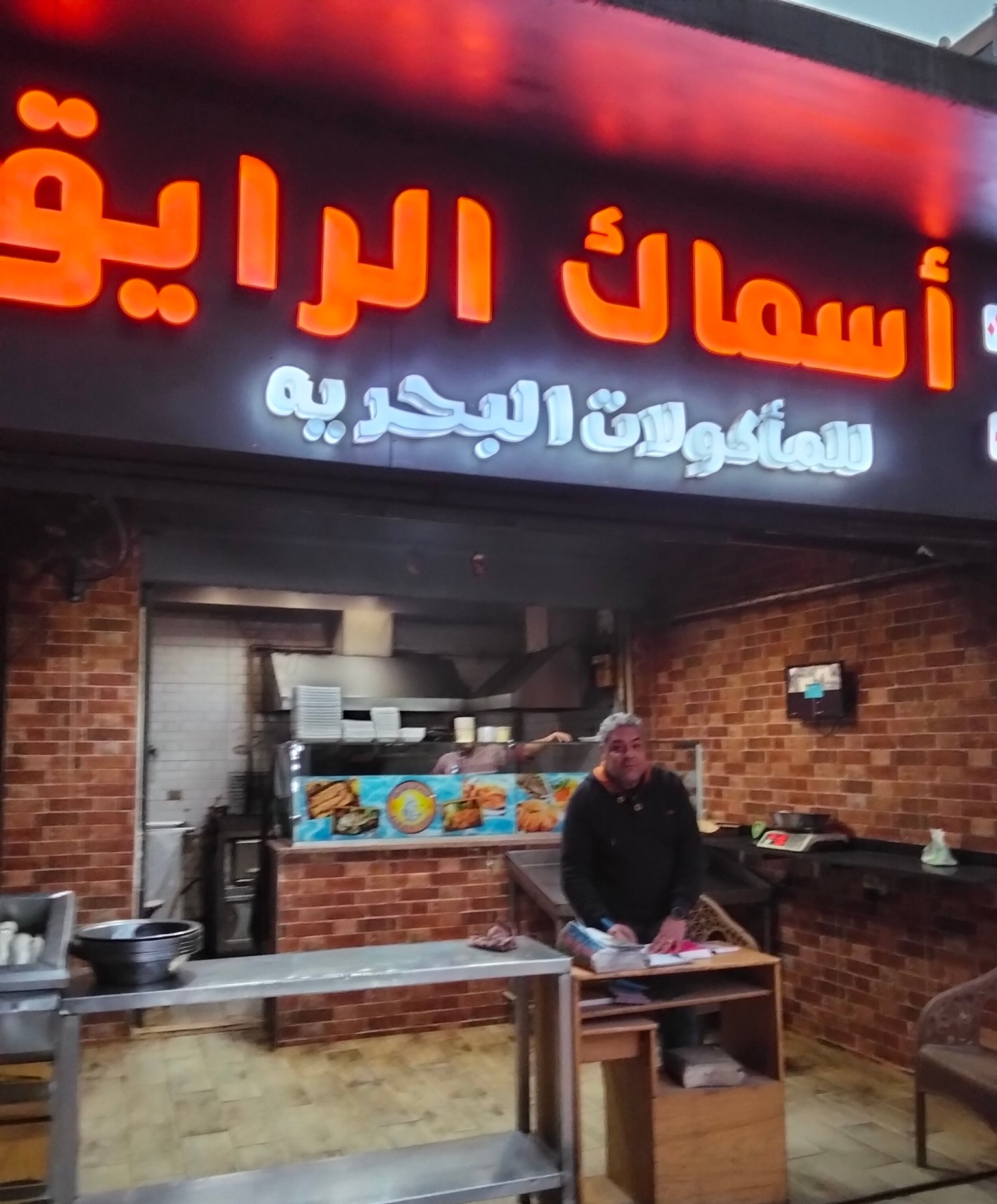 أول ما يجذبك في “أسماك الرايق” ليست رائحة الشواء فحسب، بل تلك الكاريزما الهادئة التي يتمتع بها الأستاذ أسامة. رجلٌ يجسد “الروقان” في أبهى صوره؛ يستقبل زبائنه بوجه بشوش ينسيك عناء اليوم، ويتعامل مع كل ضيف وكأنه صاحب الدار. هذه الروح “الرايقة” هي السر الخفي الذي يجعل للجلوس في حضرته مذاقاً خاصاً، حيث يشعر الزبون أن سعادته هي الأولوية القصوى قبل أي شيء آخر.